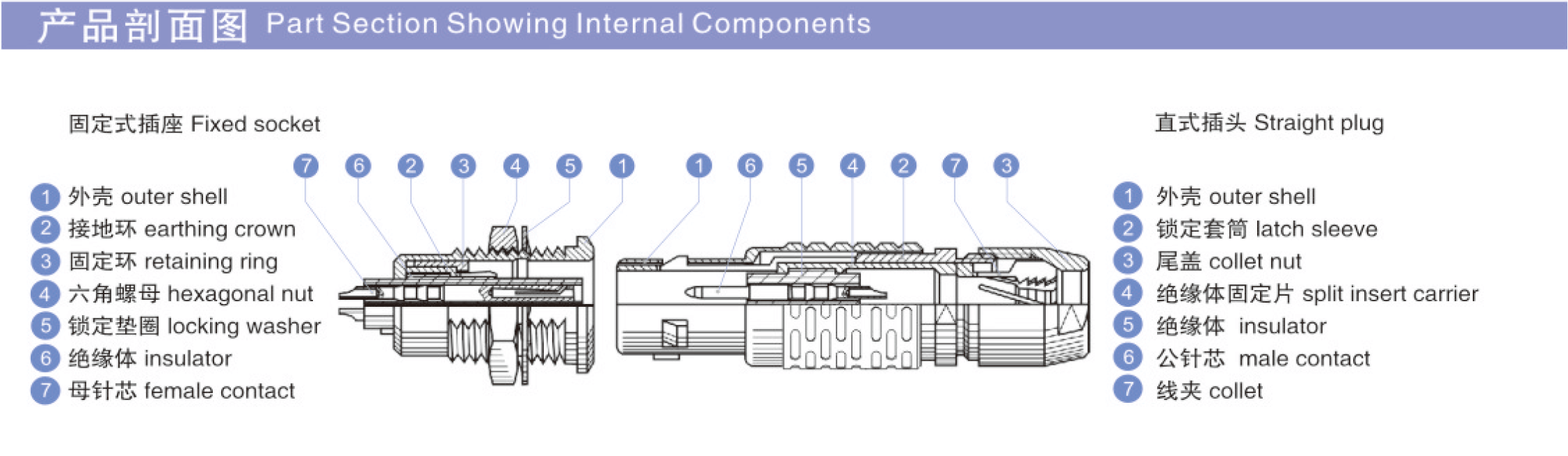 B系列连接器采用安全推拉自锁系统,适用于高级传感器及精密电子仪器设备之间的电气连接, 本产品体积小,多芯数型2-32芯,接点密度高;多种键位选择。外壳采用铜合金加工,表面镀铬 或者镀镍,插针插孔采用铜合金加工,表面镀金;绝缘体采用耐高温、具体有良好绝缘性能的工 程塑料注塑成型;护套采用软件软性工程塑料注塑成型,能很好的保护电缆。