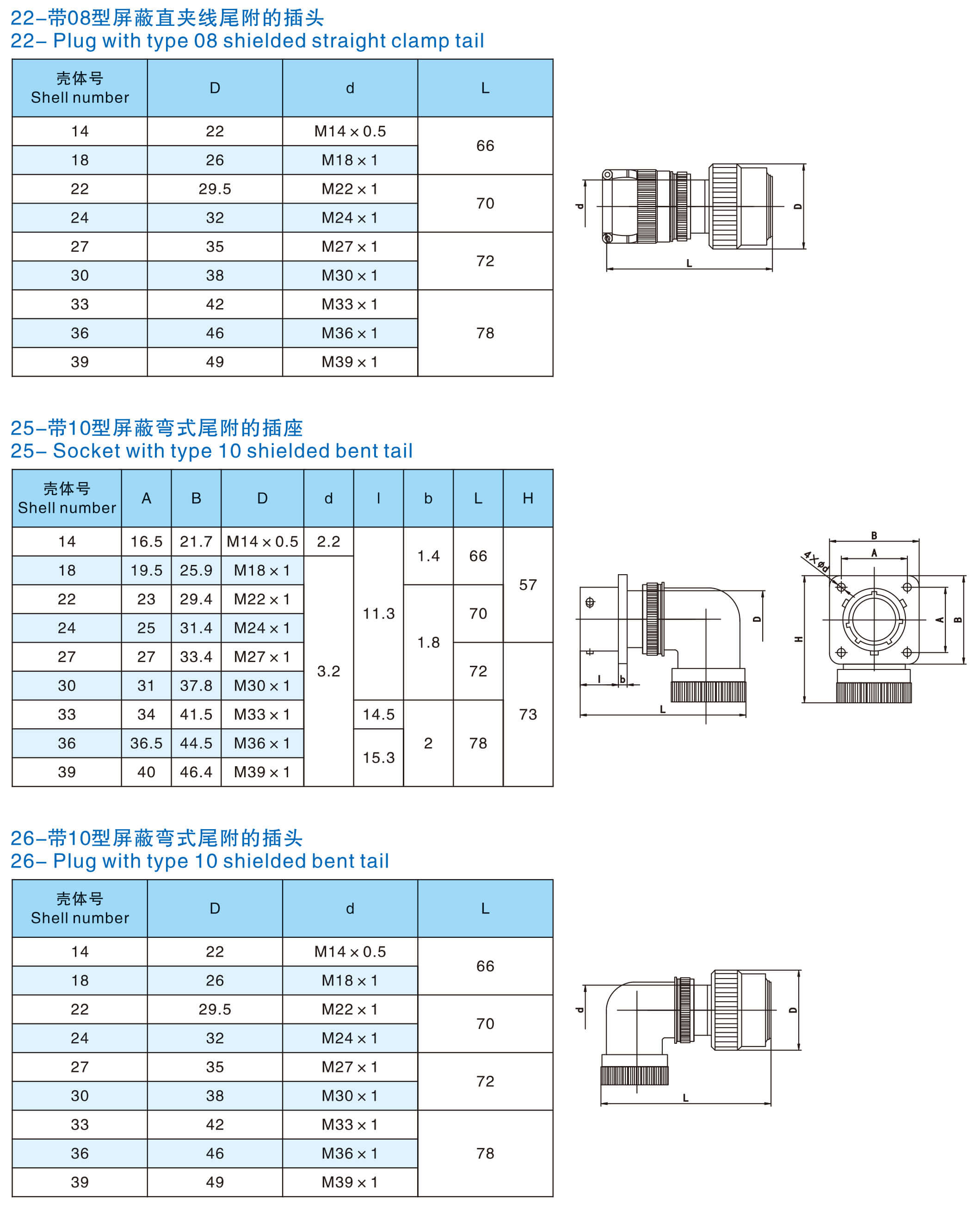 21-带08型屏蔽直夹线尾附的插座22-带08型屏蔽直夹线尾附的插头